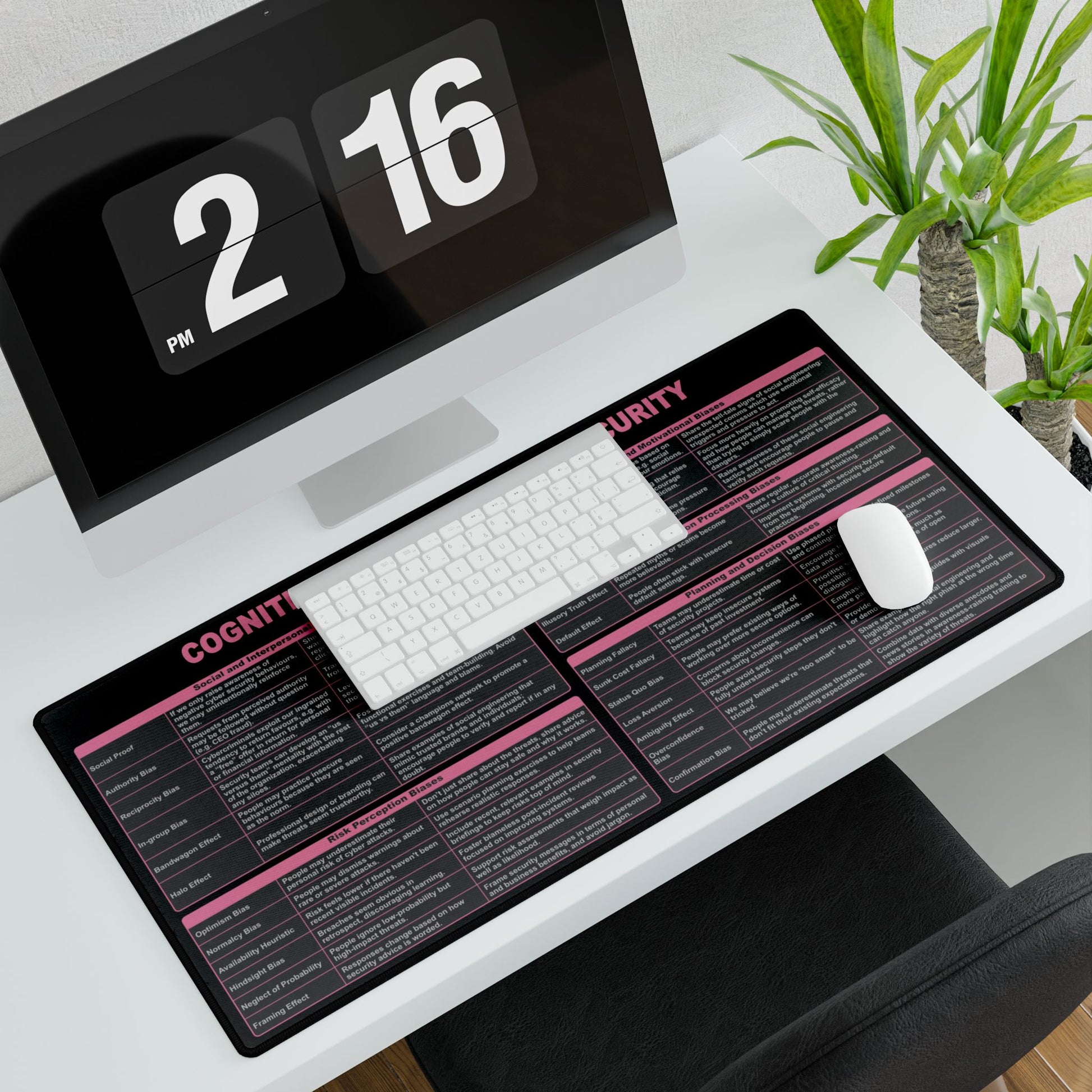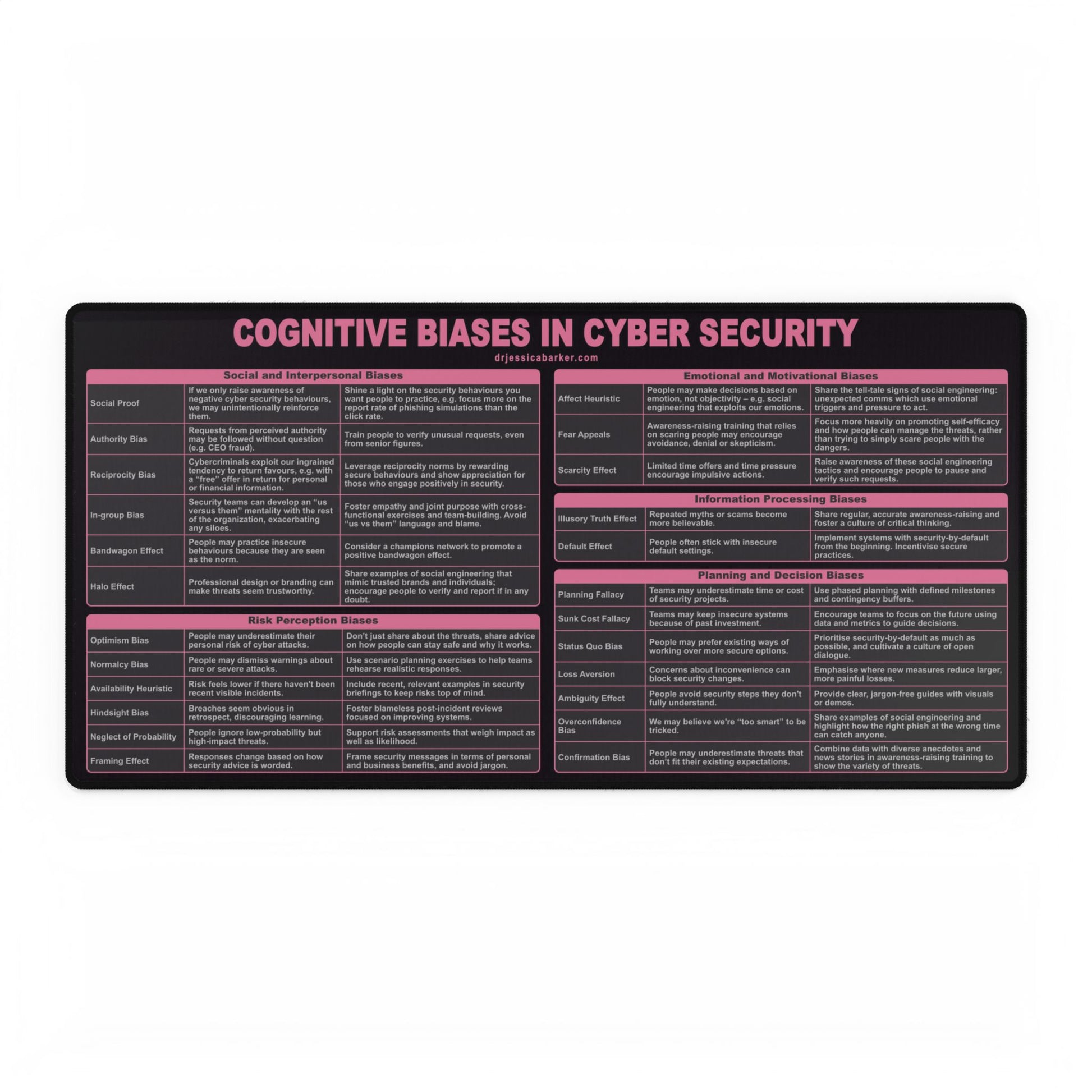 Cybersecurity Cognitive Bias Desk Mat - 24 Biases (Black & Pink) by Dr. Jessica Barker